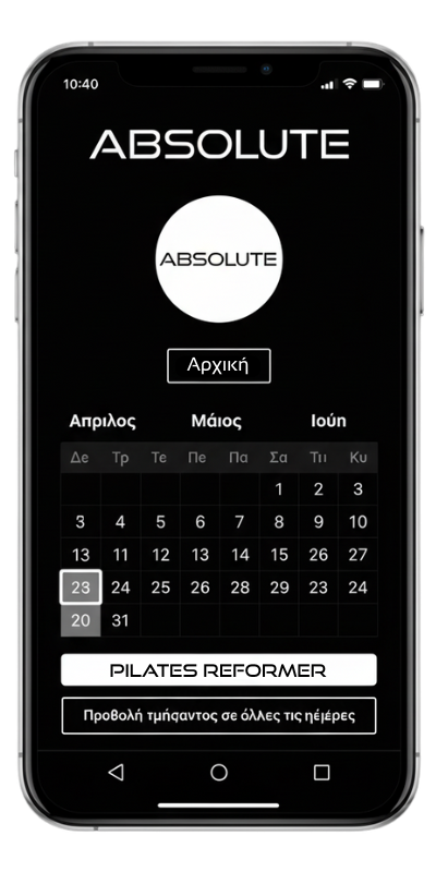 Ναι — το Absolute Wellness διαθέτει mobile app που επιτρέπει να κλείνετε μαθήματα με ευκολία, να διαχειρίζεστε το πρόγραμμά σας, και να ενημερώνεστε άμεσα για τη διαθεσιμότητα. Absolute Wellness Club